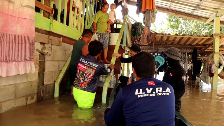 อุดรธานี กู้ภัยจิตอาสาเดินลุยฝ่าสายน้ำช่วย 5 ชีวิต ถูกน้ำท่วมบ้านจมมิด