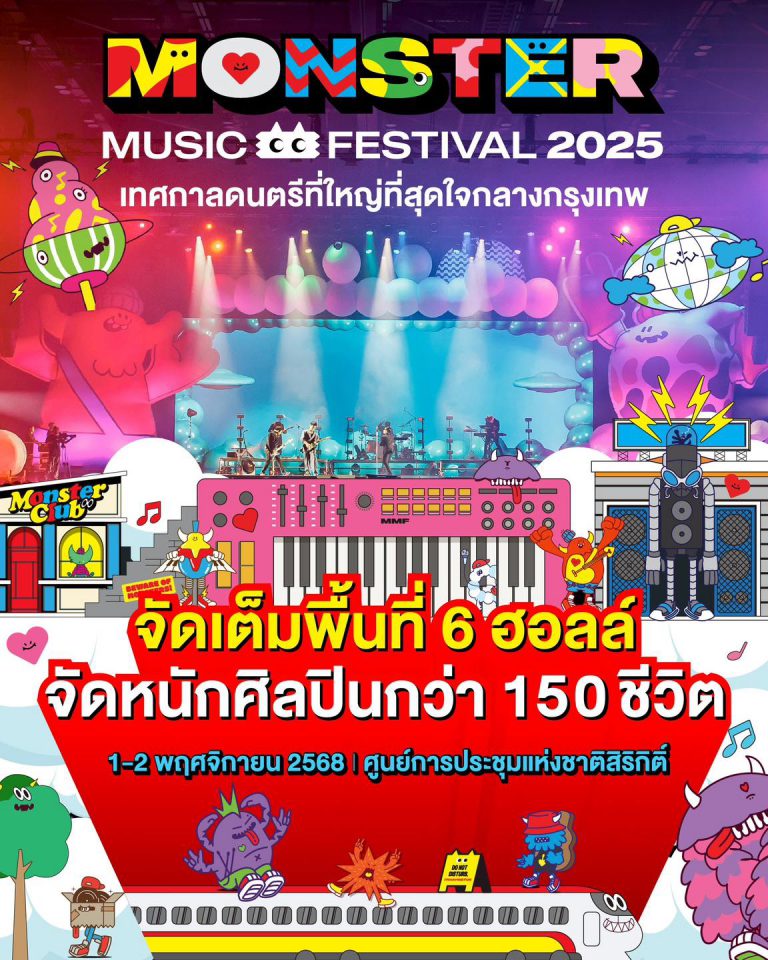 ชาวแก๊ง! เตรียมตัวให้พร้อม เทศกาลดนตรีที่ใหญ่ที่สุดใจกลางกรุงเทพกลับมาแล้ว Monster Music Festival 2025 จัดเต็มกว่า 150 ชีวิต เจอกัน 1-2 พฤศจิกายนนี้ ที่ ศูนย์การประชุมแห่งชาติสิริกิติ์